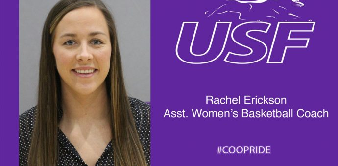 Rachel Erickson has been named an assistant women’s basketball coach at the University of Sioux Falls, according to announcement today by USF Head Coach Travis Traphagen