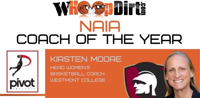 Westmont College Head Women’s Basketball Coach Kirsten Moore has been named as the WHoopDirt.com NAIA Coach of the Year presented by Pivot Analysis for the 2020-21 college basketball season. Moore qualified for the award by being named as the HoopDirt.com/Pivot Analysis Coach of the Week for Week 13 of the college basketball season.